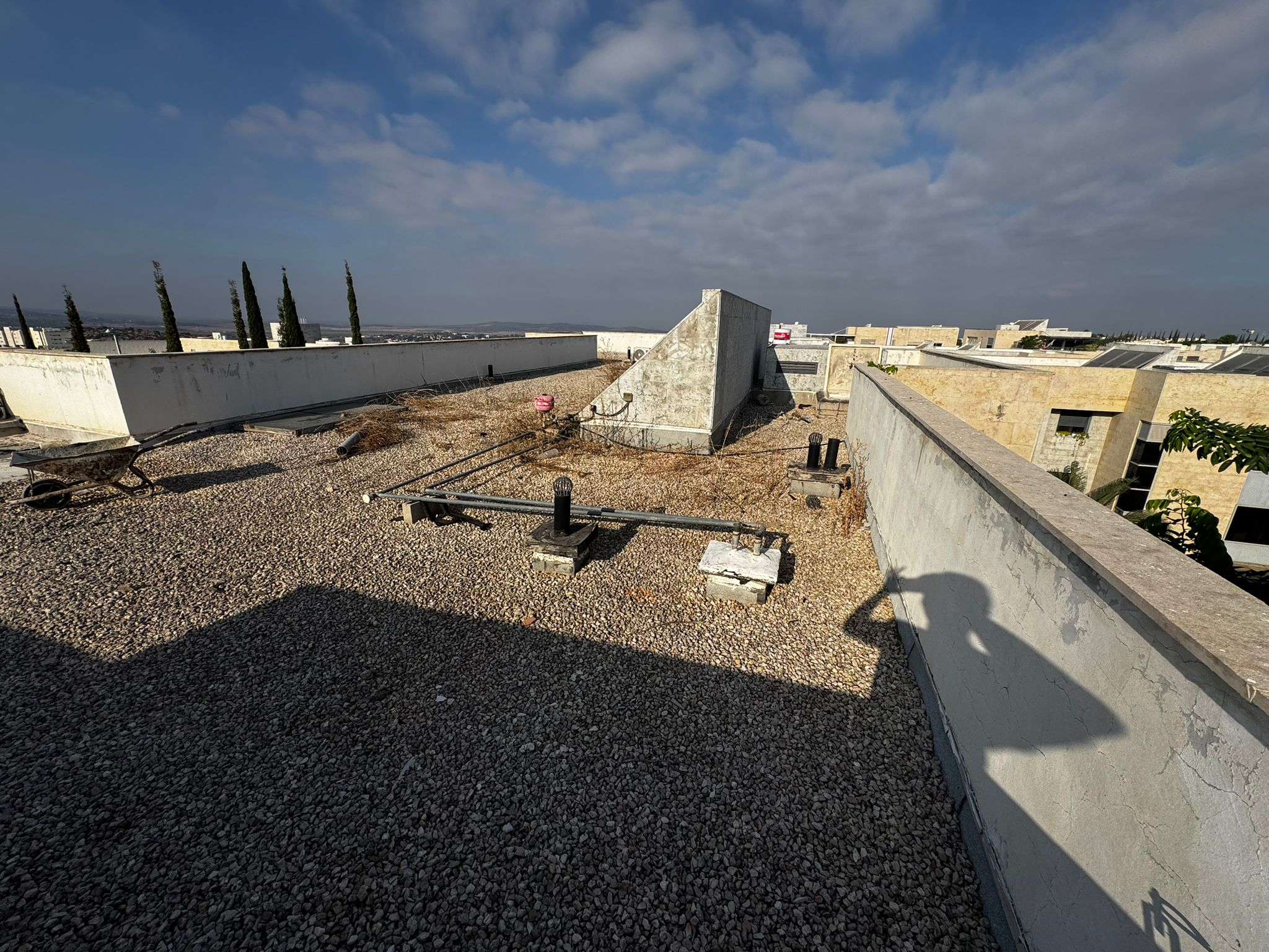 פרויקט איטום גגות ביריעות ביטומניות מודיעין בוצע בגג ותיק שסבל מנזילות חוזרות ובידוד לקוי. בעל הבית פנה לעלי חלבי במטרה למצוא פתרון אמיתי שיחזיק לשנים ארוכות, ולא רק תיקון זמני. העבודה תועדה מהשלב הראשון ועד לגימור הסופי, כולל הסרת שכבת החצץ, תיקון שיפועים, הנחת יריעות ביטומניות ויישום שכבת ציפוי כפולה של אקריל פז.
